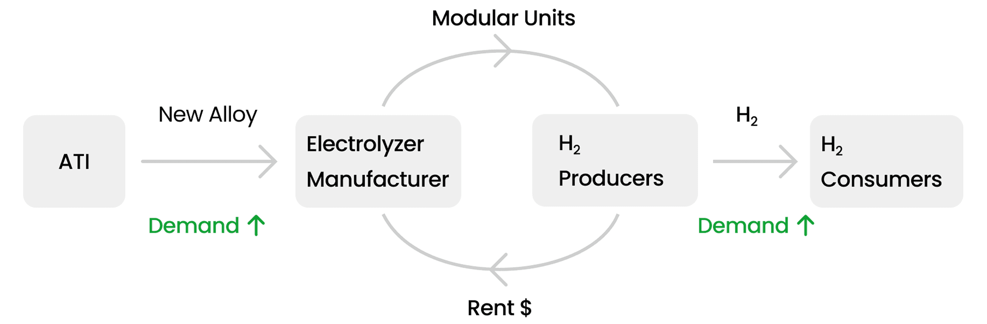 Through our research and interviews, it became clear that while green hydrogen holds significant promise for decarbonizing industrial sectors, its adoption is being constrained by high capital requirements, infrastructure limitations, and uncertainty around long-term investment. ATI’s novel alloy directly addresses part of this challenge by reducing material costs and manufacturing lead times for electrolyzers. However, enabling widespread adoption will require more than material innovation—it will require a strategic approach that lowers adoption risk, supports flexible deployment, and aligns with how industrial customers make energy transition decisions.