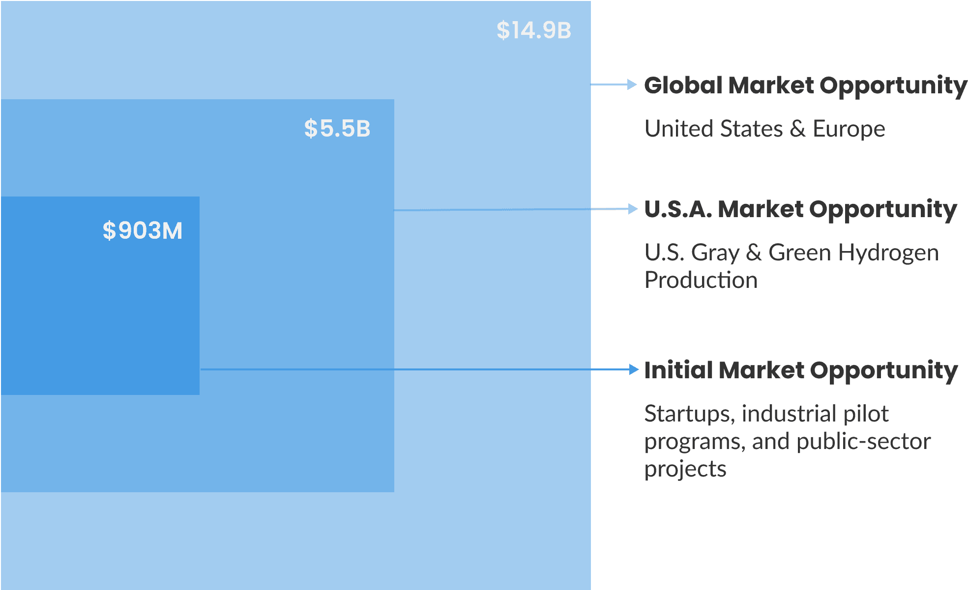 To understand where HydroPort could create the most impact, we mapped the opportunity using a TAM-SAM-SOM analysis, focusing on hydrogen producers moving from gray to green hydrogen across the U.S. and Europe. We identified U.S. gray hydrogen producers as the strongest entry point due to existing industry connections and immediate decarbonization pressure. By introducing a flexible rental model, HydroPort lowers financial risk and helps companies take their first steps toward green hydrogen adoption, building trust and momentum in a rapidly growing energy transition space.