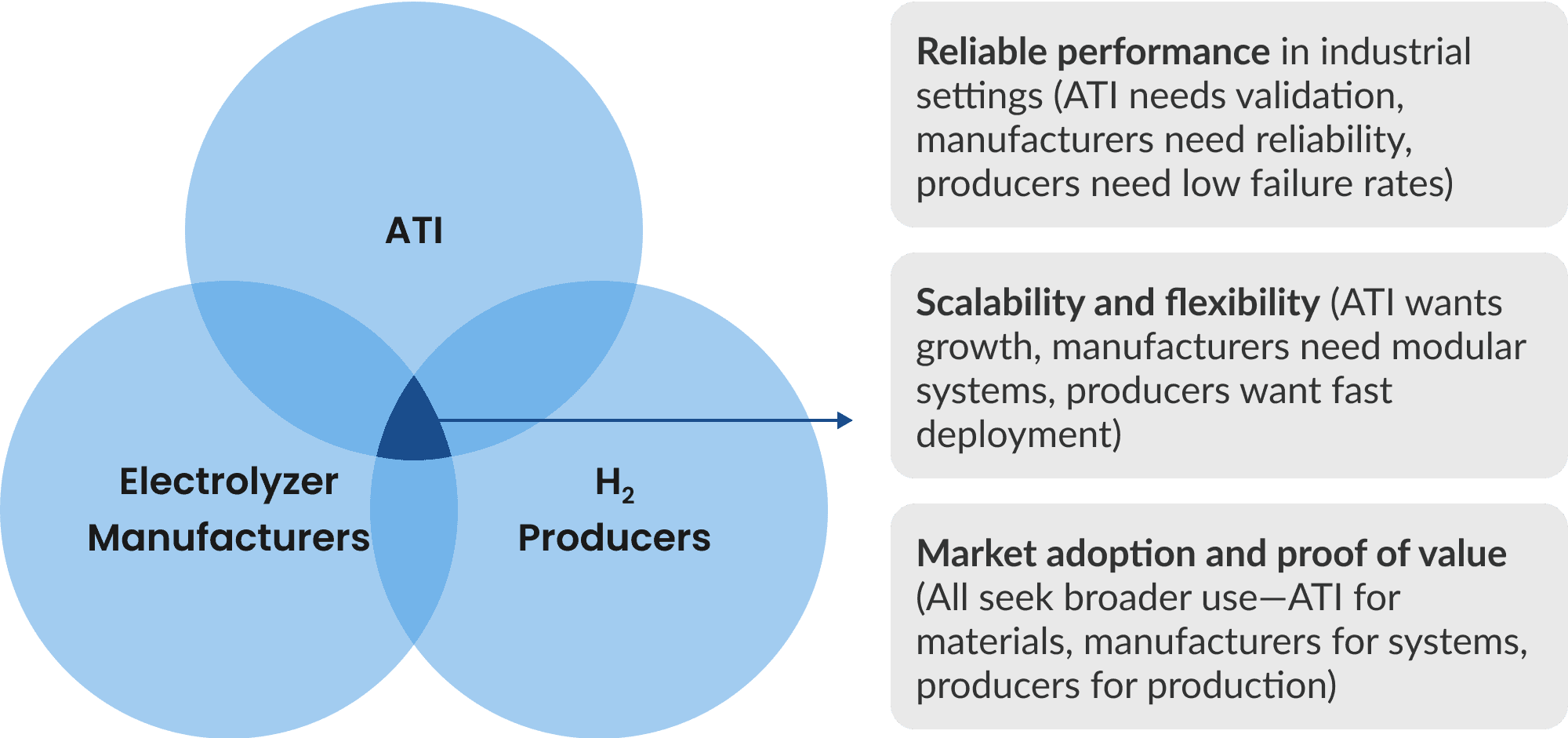 Across the value chain, stakeholders share three core priorities: reliable industrial performance, scalable and flexible solutions, and clear proof of value. ATI needs real-world validation, manufacturers require consistent system reliability, and hydrogen producers depend on low failure rates to maintain operations. Above all, adoption depends on demonstrating measurable performance and efficiency while keeping the solution affordable and accessible.