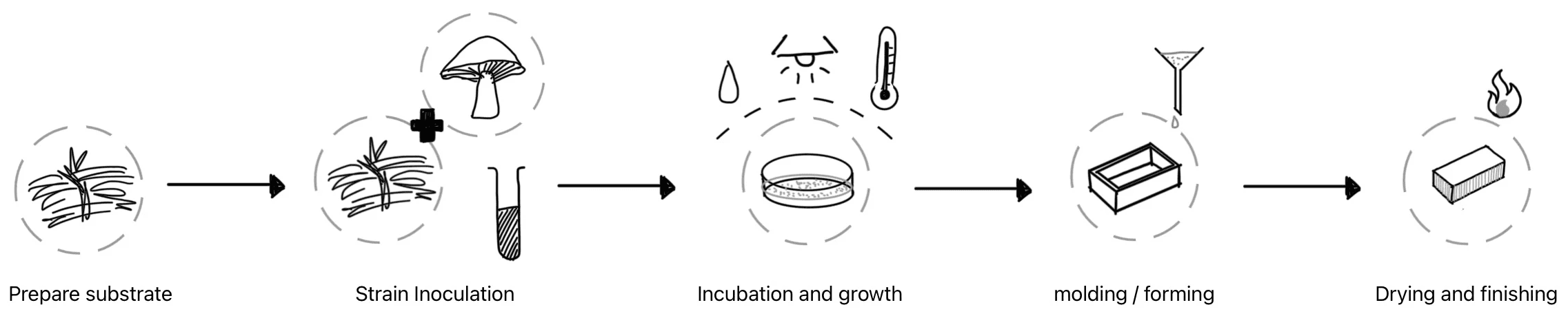 Compared to plastics and foams, mycelium materials are still costly to produce due to longer growth cycles, post-processing requirements, and the absence of standardized infrastructure. Without innovations in biochemical engineering and manufacturing technology, cost-efficiency and scalability remain significant hurdles.
