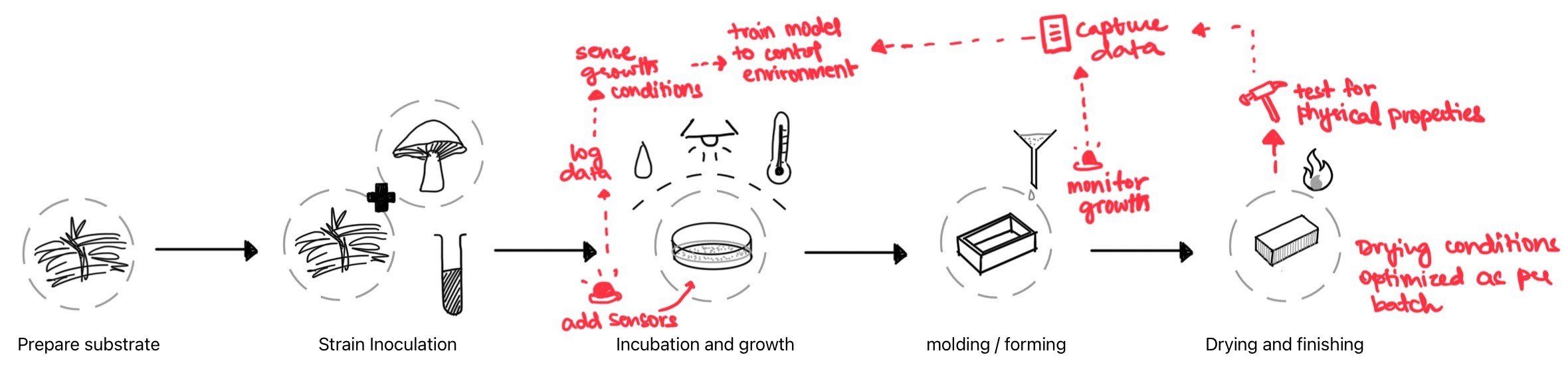 Machine learning models simulate how fungal strains interact with variables like substrate type, moisture, and temperature. This predictive control helps optimize strength, texture, and growth speed—enhancing consistency and tailoring properties for different use cases.