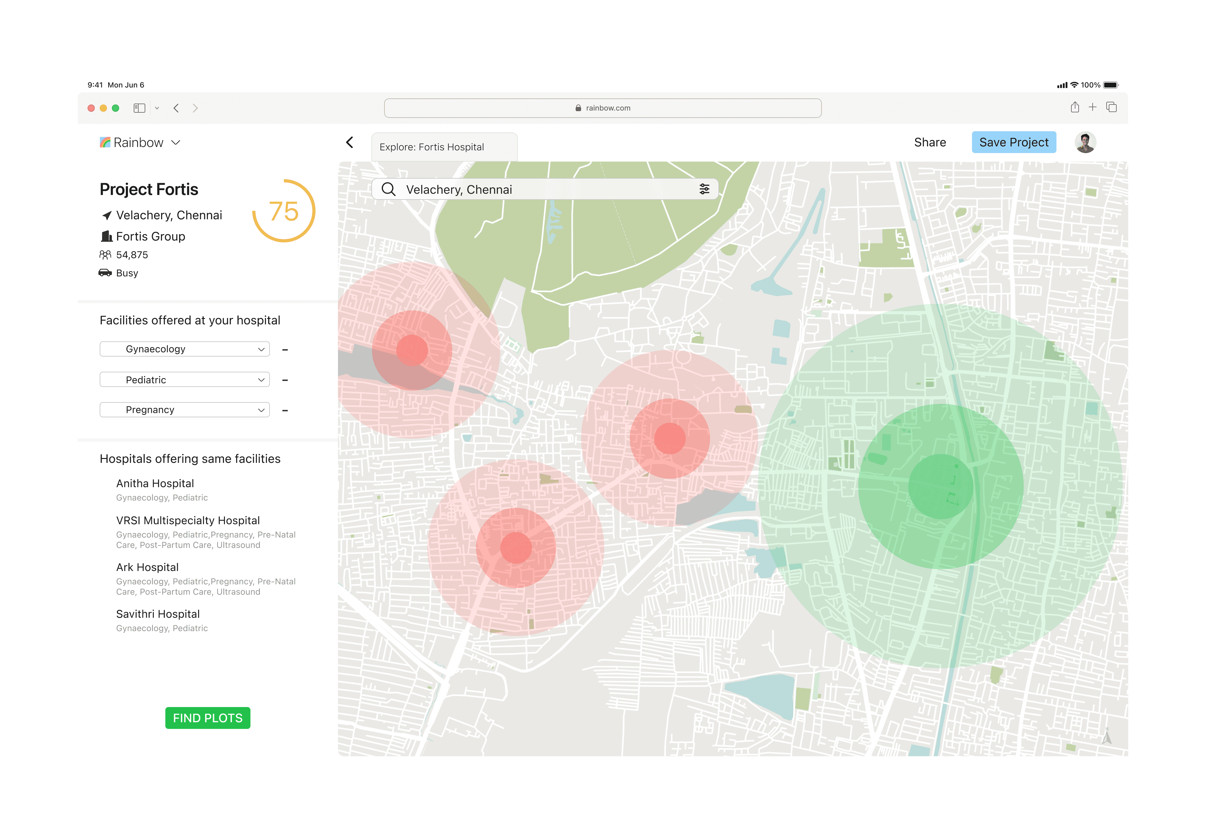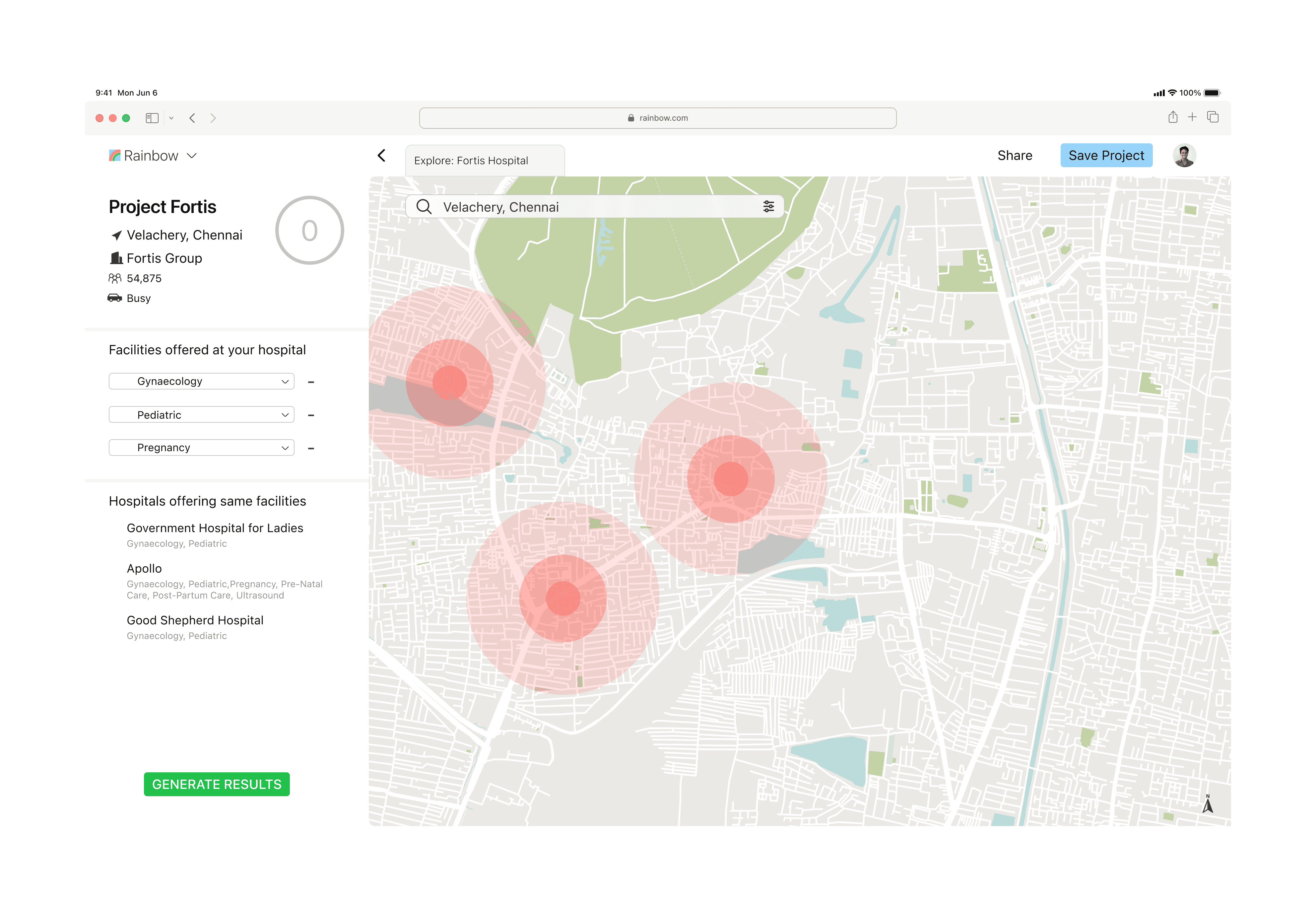 "Our product will let users pick the perfect location for their hospital, filter against parameters which will affect people engaged in the medical industry, the government and the local communities by providing providing a service that uses real time data to help stakeholders locate the best location for their hospital and services."